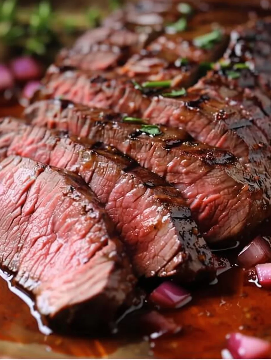 9. Serve Immediately: Arrange the sliced London Broil on a serving platter, garnishing with fresh herbs if desired.